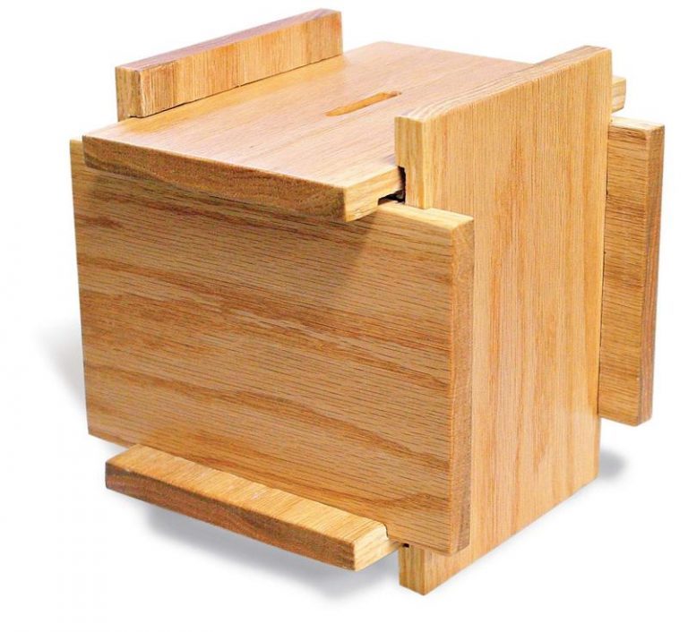 This unusual coin box is made from six pieces of solid wood.