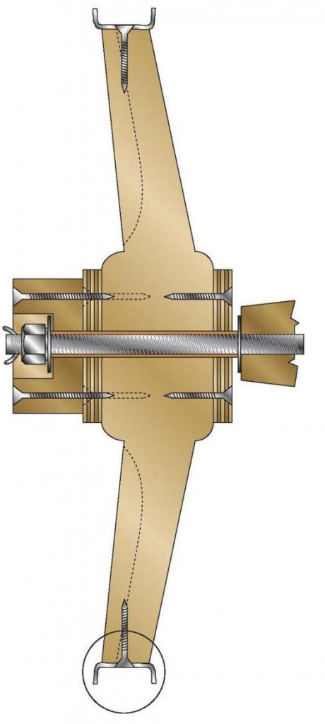 Cut a good chamfer on the face of the spokes and round the back. It is easier to do this chamfering before assembly. Chamfering is not just for decoration. It reduces the weight where strength is not needed and removes wood that would become damaged anyway.